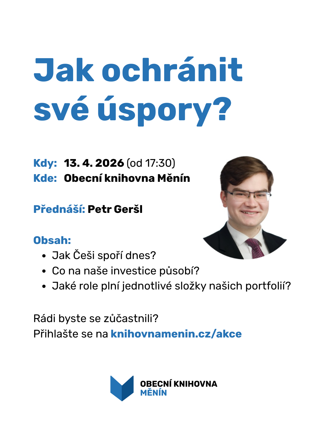 Jak Češi spoří dnes? Co na naše investice působí? Jaké role plní jednotlivé složky našich portfolií? Petr Geršl, akreditovaný poradce skupiny Golden Gate, rozebere během své přednášky aktuální stav úspor českých domácností a ukáže, jak je ochránit v kontextu aktuálního dění.